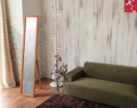 耐久性、耐水性に優れたチーク材を使用した30cm幅のスタンドミラー。