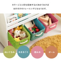 おもちゃなどを収納できる引き出しが付いた絵本ラック。